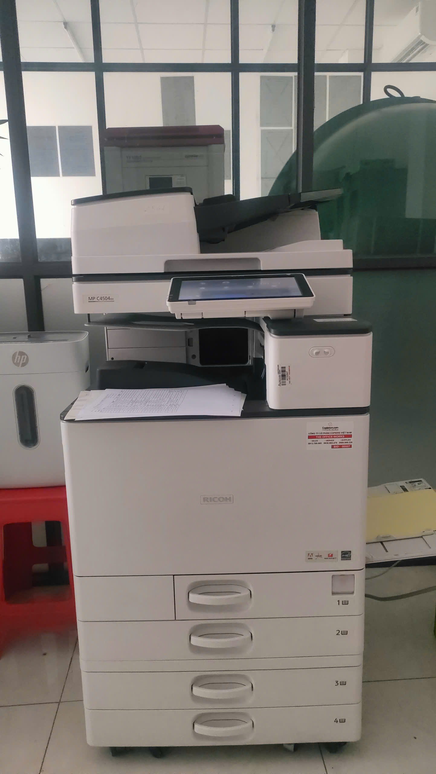 Máy Photocopy Ricoh MP C4504 máy photocopy chuyên nghiệp hội đủ mọi chức năng cần thiết bao gồm photo màu, in màu mạng, scan màu và fax. Người sử dụng không cần tốn thêm chi phí để trang bị bất kỳ thiết bị văn phòng nào nữa.